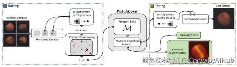 PatchCore 的核心思想是:构建一个具有强代表性的正常图像特征记忆库,并在推理时通过特征匹配实现异常判断。