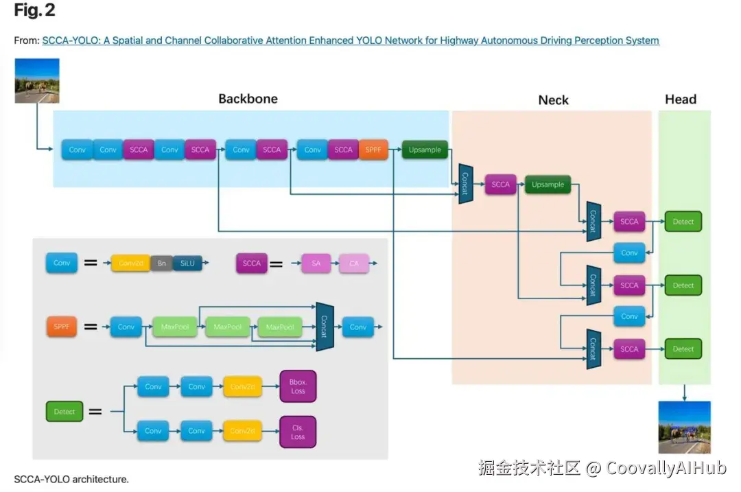 基于对乡村道路场景的深入分析,研究团队提出了一种专门针对这类环境优化的空间-通道协同注意力YOLO网络,简称SCCA-YOLO。这一网络在保持YOLOv8高效架构的同时,通过引入创新的注意力机制,显著提升了检测精度。