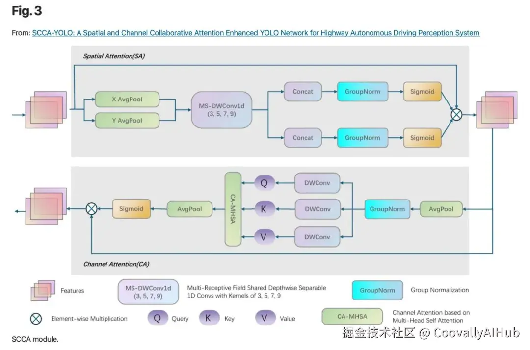 SCCA模块的核心设计: 传统注意力机制通常单独考虑空间或通道维度,而SCCA模块通过顺序方式融合具有共享语义的空间注意力和通道自注意力。