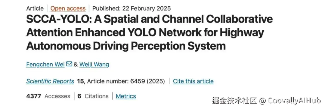 《SCCA-YOLO: A Spatial and Channel Collaborative Attention Enhanced YOLO Network for Highway Autonomous Driving Perception System》这篇文章提出了一种专门针对乡村道路场景设计的空间-通道协同注意力YOLO网络。该网络集成了一种创新的注意力机制,以顺序方式融合具有共享语义的空间注意力和通道自注意力,从而提升YOLOv8的精度。此外,还集成了Ghost模块以实现网络的轻量化特性。在自有数据集和公开数据集上进行的评估,验证了该检测网络性能的有效性。