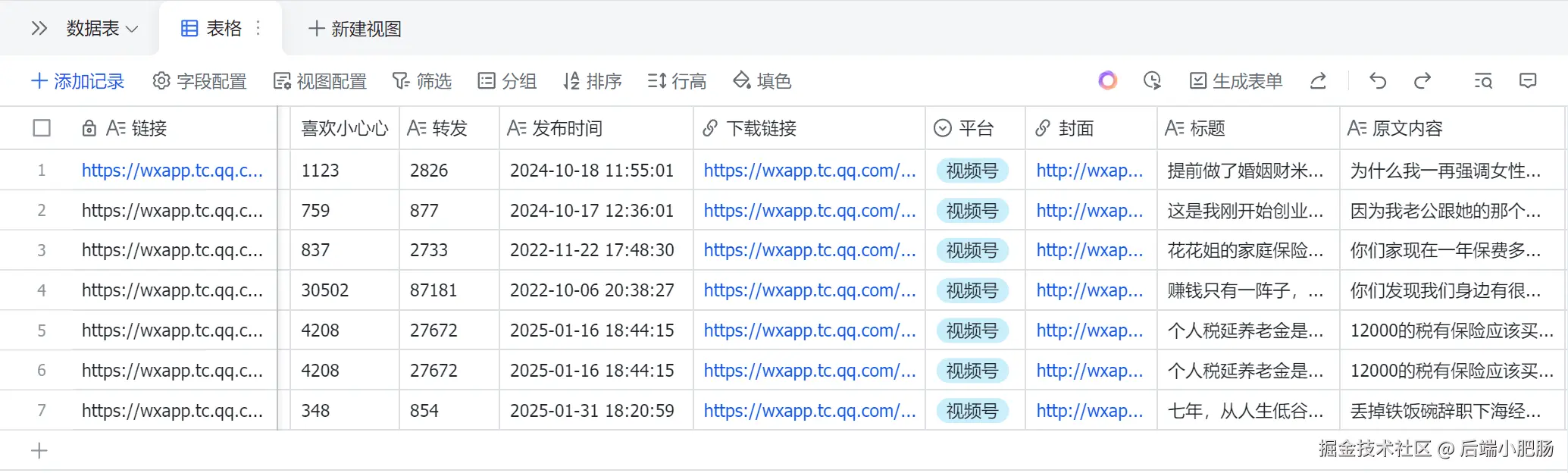 大家好,我是小肥肠!还在手动整理视频号对标数据?本期教你用 Coze + 飞书 + 自研插件 搭建全自动情报监控 工作流 。只需输入账号,一键聚合头部账号动态,AI 自动拆解二创并同步入库。想拥有自动化的私人素材库,这篇硬核干货千万别错过~