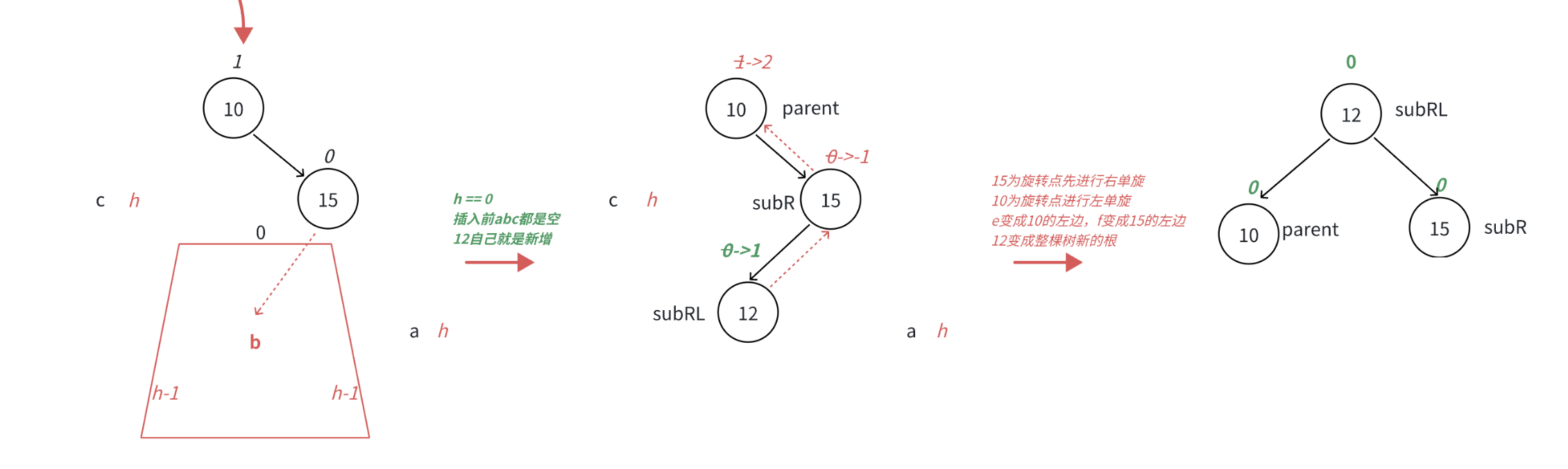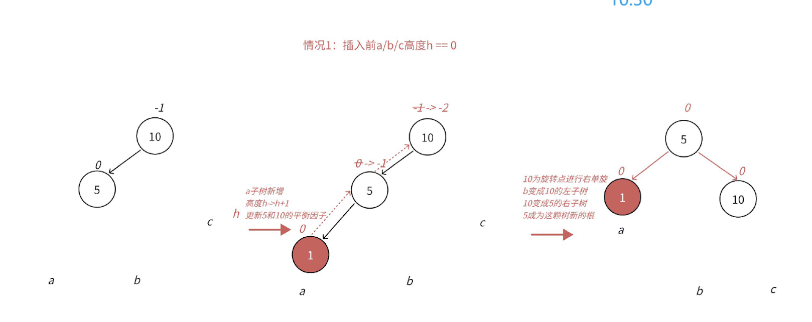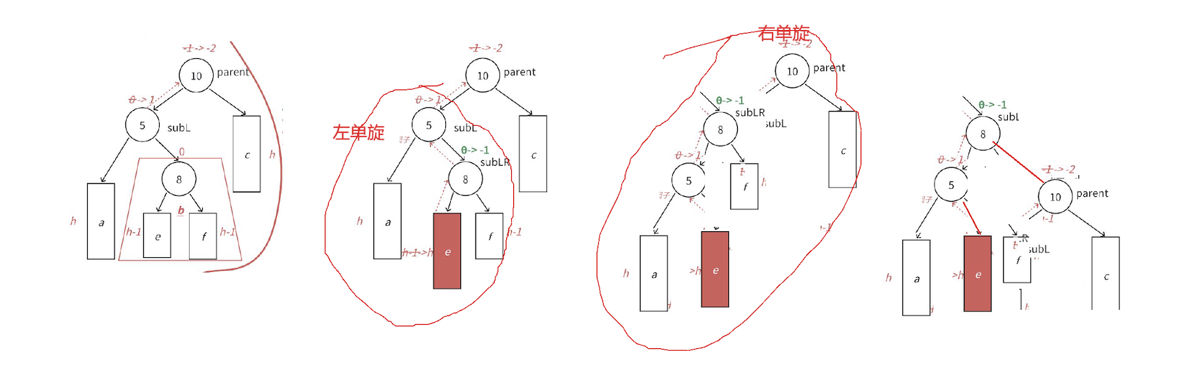 //因为单旋回修改平衡因子 所以要提前纪录 其实难的不是旋转本身 而是后面要分清楚平衡因子的调节