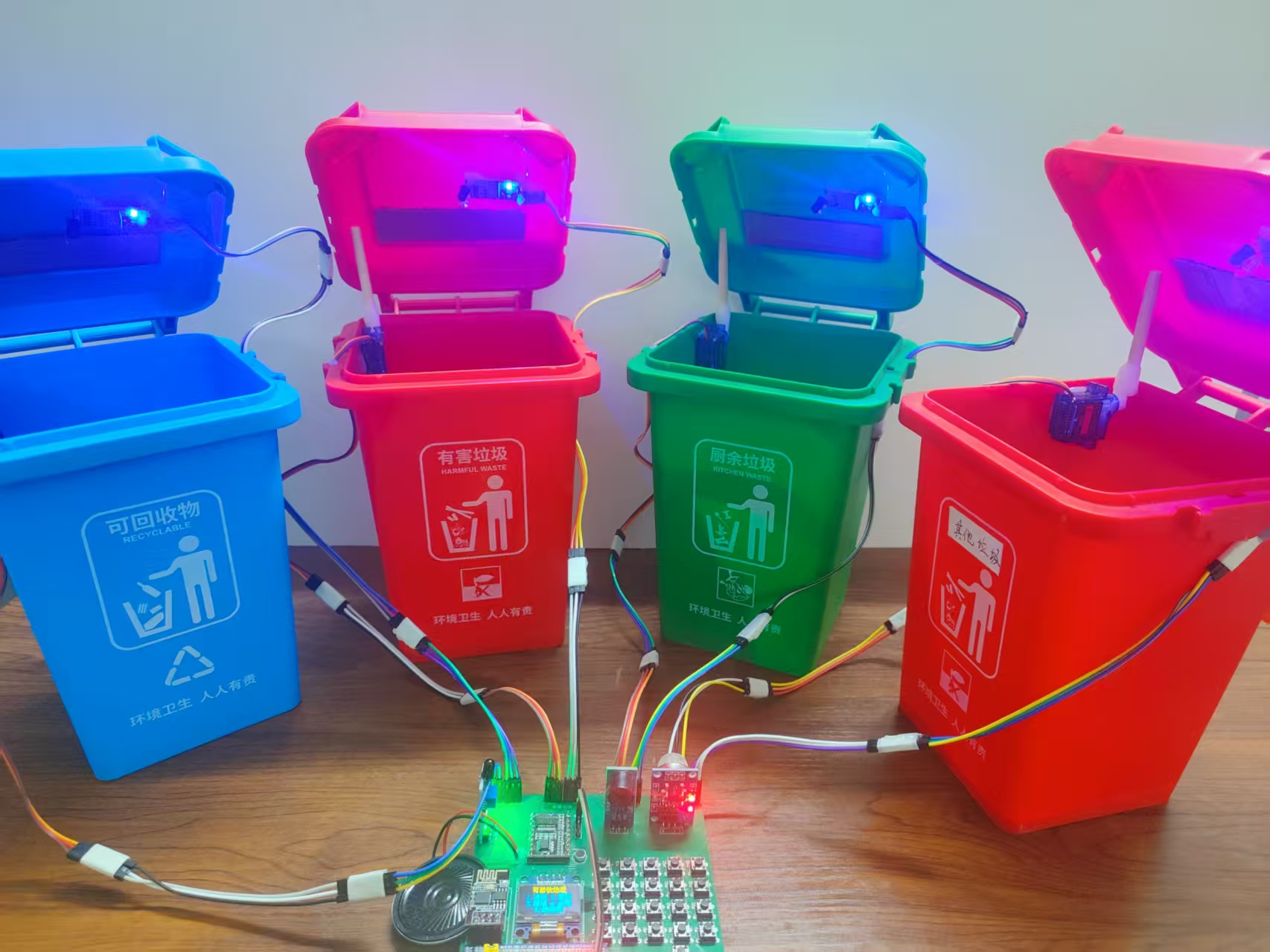 矩阵按键分类:分别对应主要垃圾类别(可回收、有害、厨余、其他等),提供快速直接的分类选择