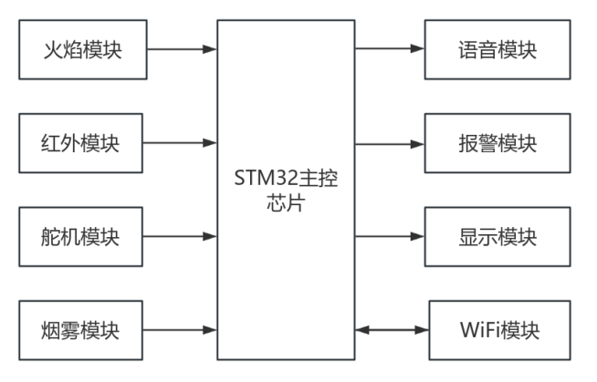 报警执行机构:检测到火灾风险时,蜂鸣器发出高分贝警报,OLED显示警示信息,同时通过WiFi向管理平台发送报警