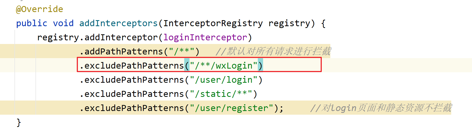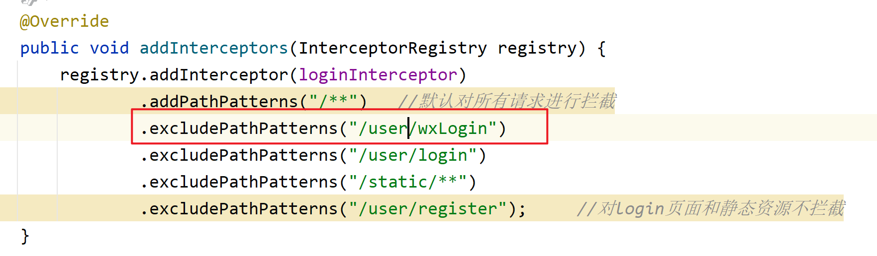 刚开始这样配置,/user/login生效,/user/wxLogin不生效