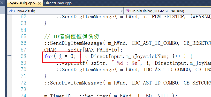 图19 中,我所找到的几个报错信息,都是出现在同一个代码文件【joyaxisdlg.cpp】之中,且基本上都是由于使用了【i】这一未声明的标识符。我们将鼠标光标移动到红色框线所示位置的 error 文字区域中,然后双击。