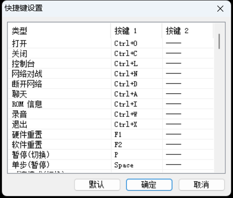 我们依次点选 VirtuaNES 模拟器的【选项】,【快捷键】菜单命令,结果会弹出下图所示的对话框。