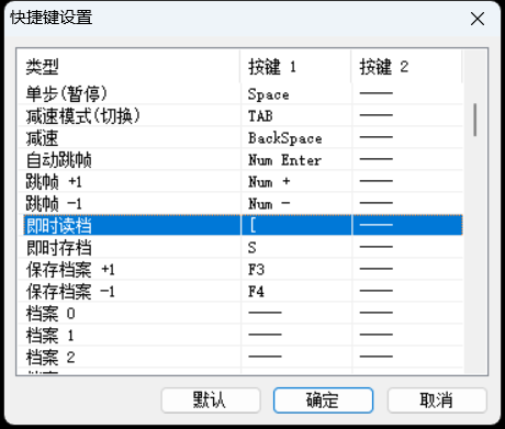 在这里,我打算修改一下这两个快捷键。之所以选择修改,是因为,一般情况下,这两个菜单项,我不咋使用。而【即时存档】菜单项的快捷键 S,通常,我在设置模拟器的手柄时,会用到。