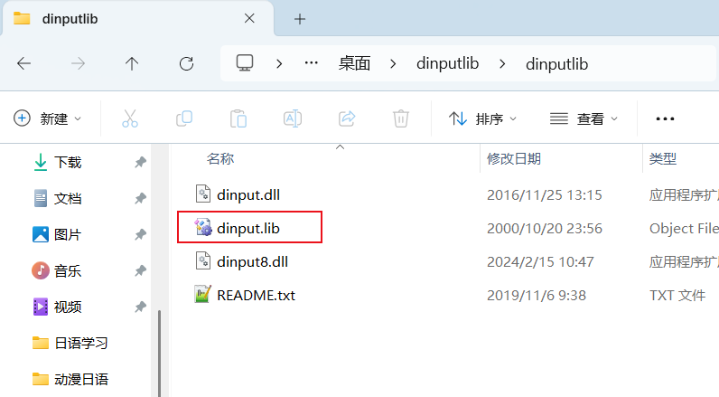 请将图42 中红色框线所示的【dinput.lib】文件复制到图7 所示的路径里面,结果如下。