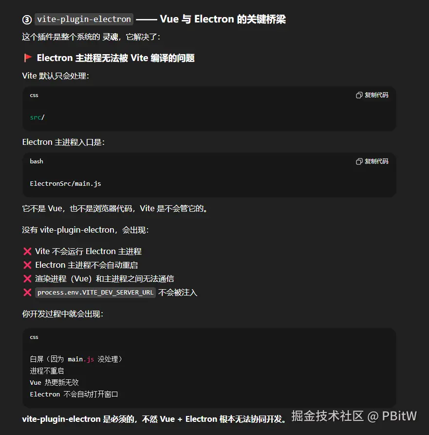 这里菜鸟完全不知道为什么要这些,所以让GPT先解释一下这几个包,其中最重要的是 vite-plugin-electron!