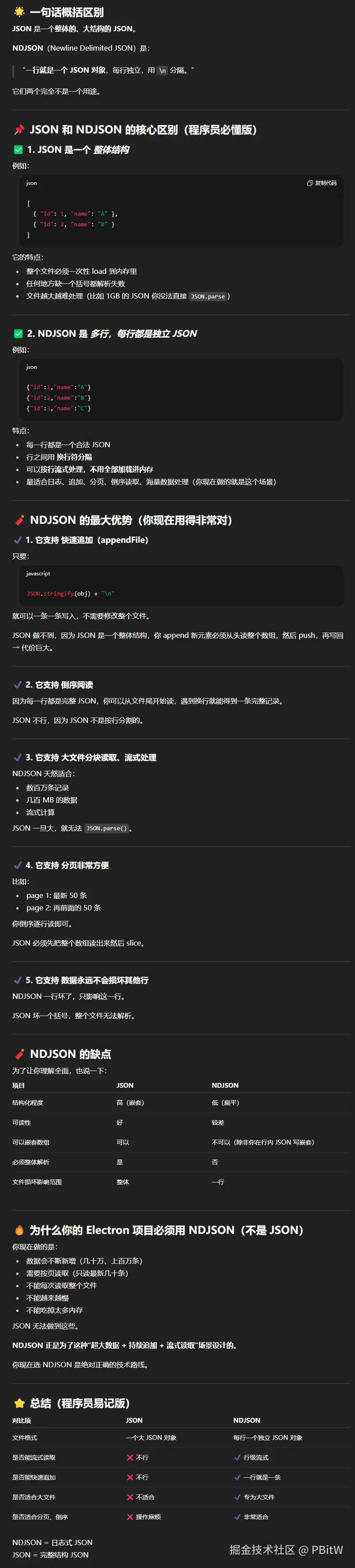 问GPT,ndjson 和 json 的区别