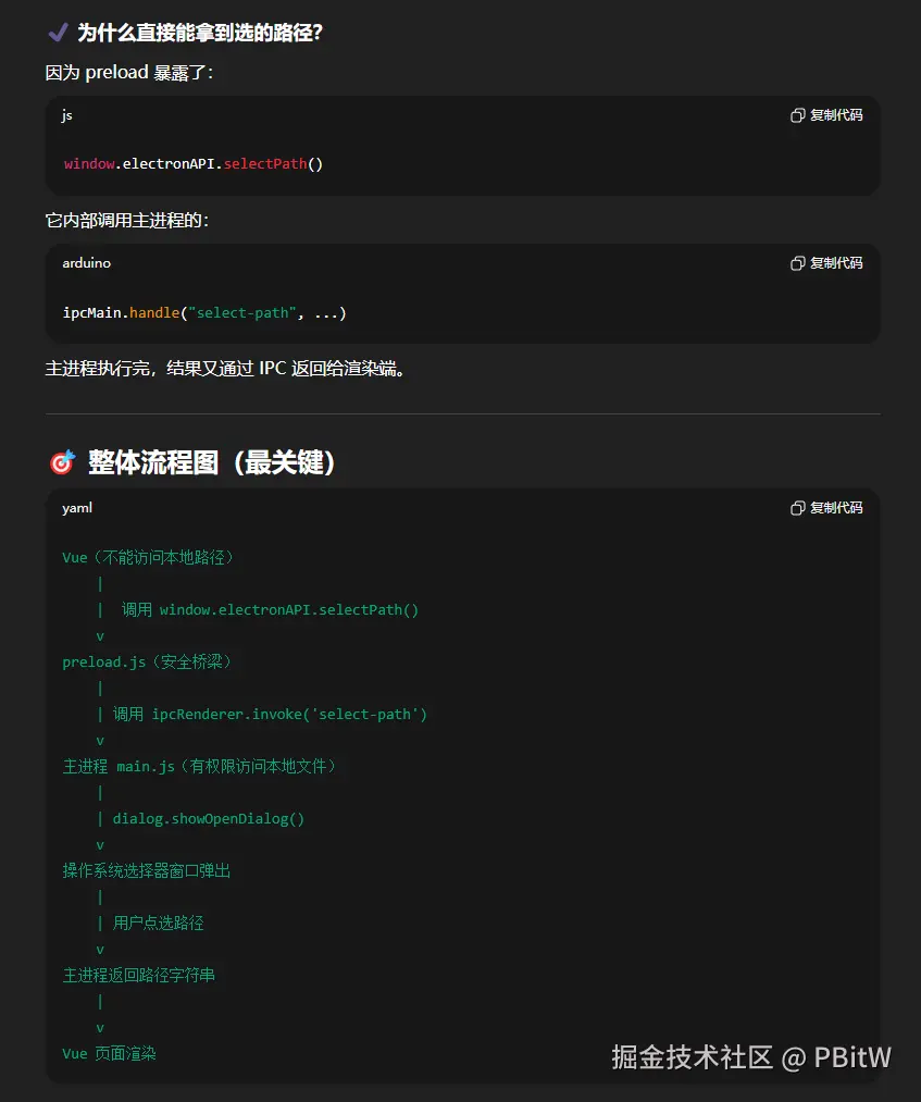 菜鸟想的是,虽然读取文件那一块的electron不会,但是自从AI流行起来,这些好像都没有那么困难了。