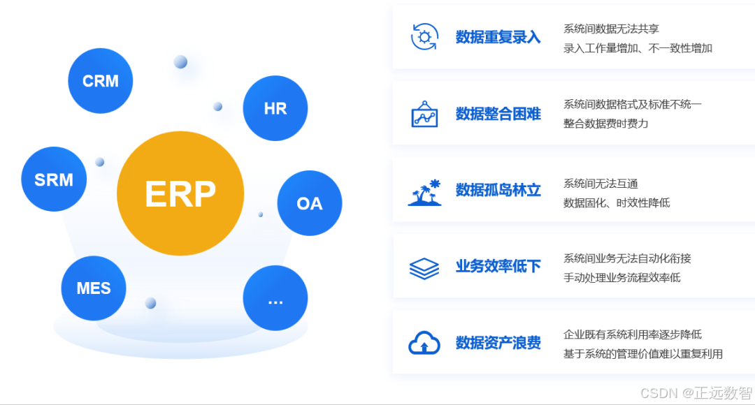 (1) 数据无法在系统间共享,导致信息重复录入、数据不一致;