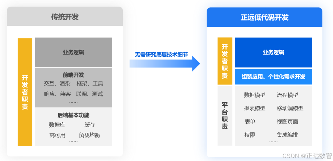 从效率困局到成本重压,从协同鸿沟到创新桎梏,传统应用开发的痛点本质上是 "技术主导" 模式与 "业务驱动" 需求的严重脱节。正远低代码平台的出现,并非简单的工具革新,而是对开发逻辑、协作模式、价值分配的全方位重构 ------ 它将底层技术封装为通用能力,让开发者聚焦业务核心;它降低开发门槛,让业务人员参与共创;它打通系统孤岛,让数据与流程无缝流转;它赋予敏捷迭代能力,让创新试错不再昂贵。