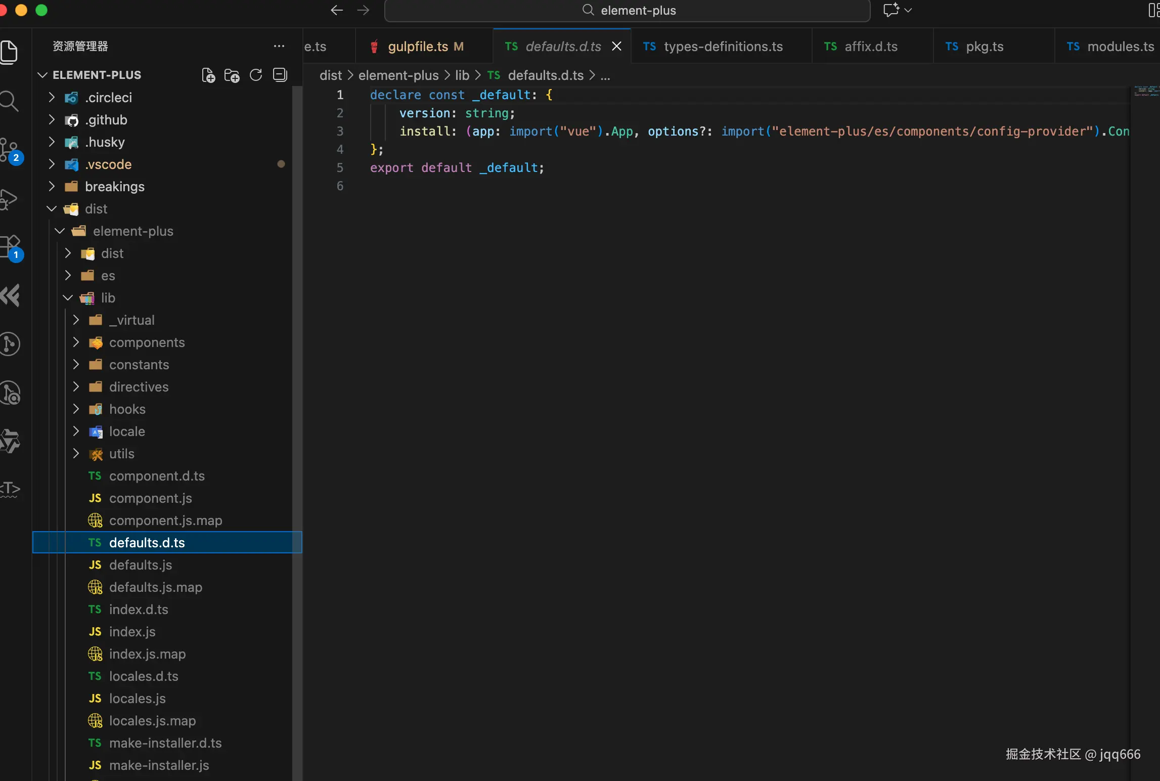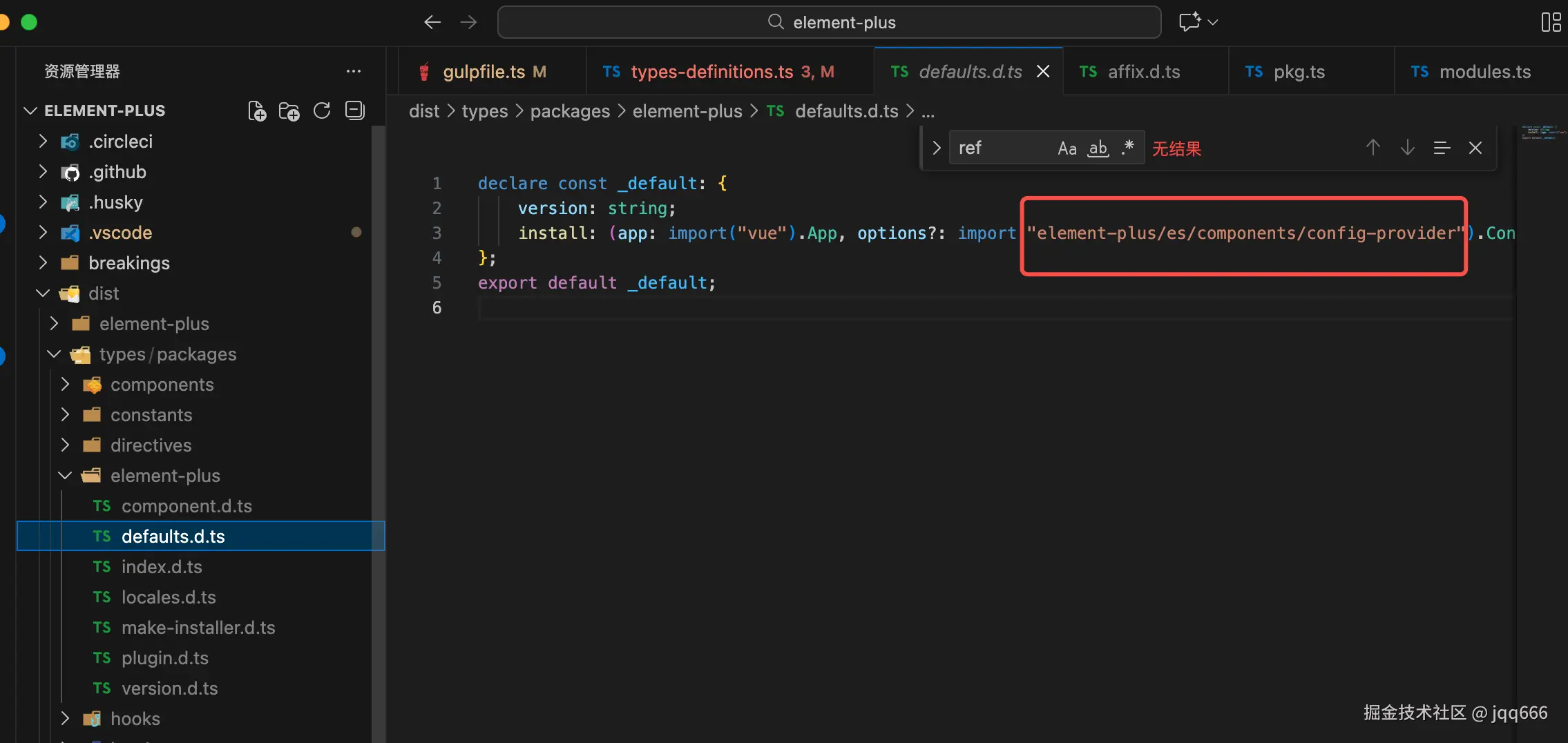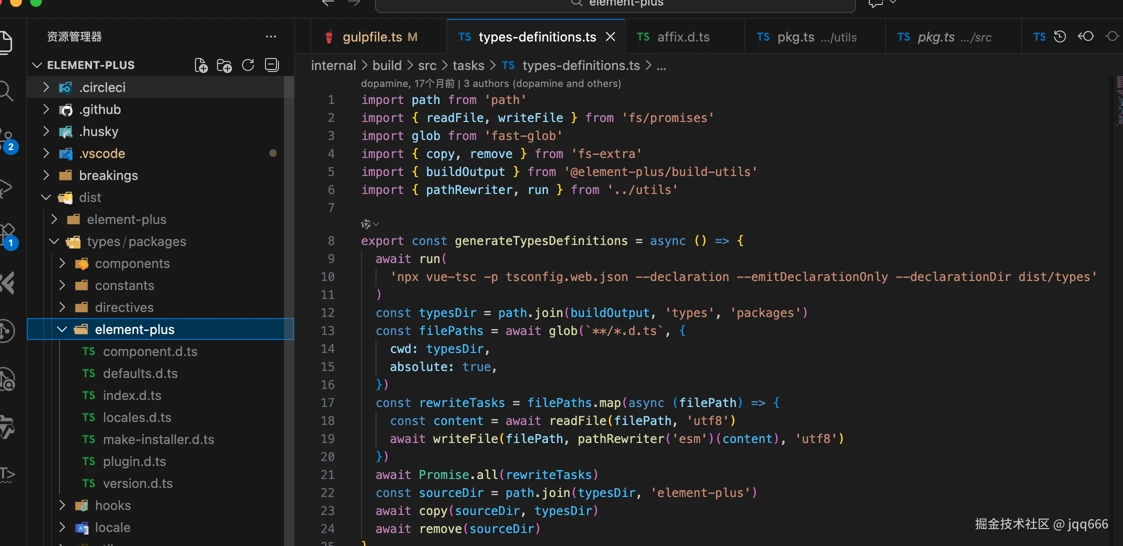 可以看到这里import的是es文件目录下的类型文件,之前打包的es下面并没有对应的类型啊???其实后面还有处理,会把types的相关类型移动到对应目录下,需要往后面看 copyTypesDefinitions