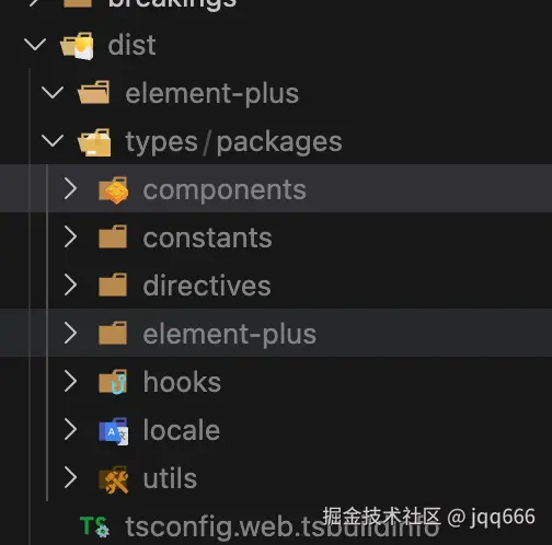 我们之前打包的配置 preserveModules 值为 true 时,不会有element-plus的目录结构了,下面的文件会提升到上层。