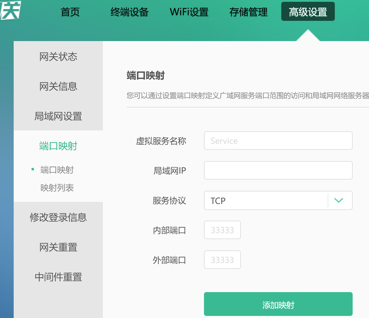 3.本来没找到在哪设置端口映射来着,因为快速维装入口没有这一项。结果今天反而在普通权限入口找到了端口映射功能。