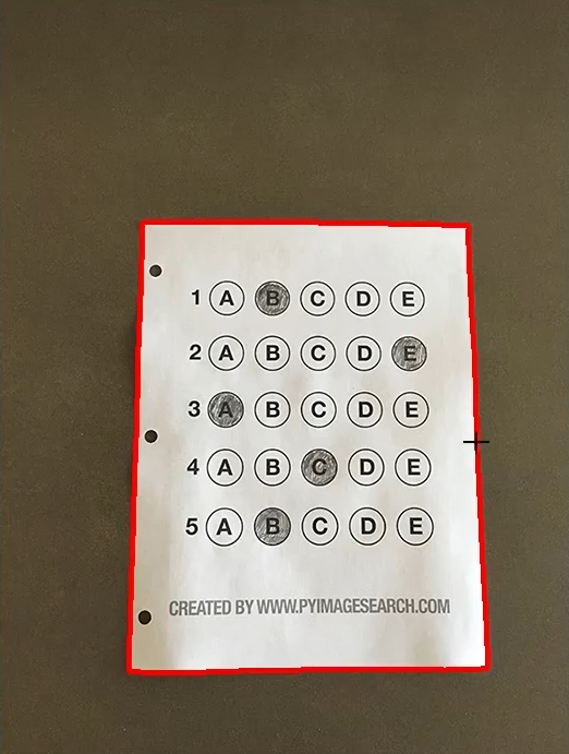 cv2.approxPolyDP()),提取轮廓的四个顶点(答题卡的四个角点)。 -