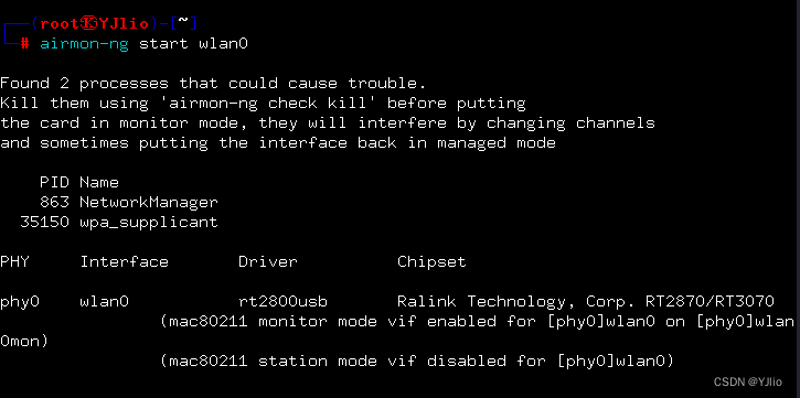 - 识别成功:看到无线接口名称