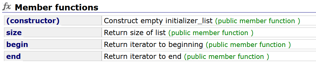 initializer_list 是C++11新增的一个容器(类模板),该容器并没有提供过多的成员函数只,只有容器大小,以及迭代器访问接口,可以认为 initializer_list 底层是使用了 _start / _finish 两个指针维护区间元素