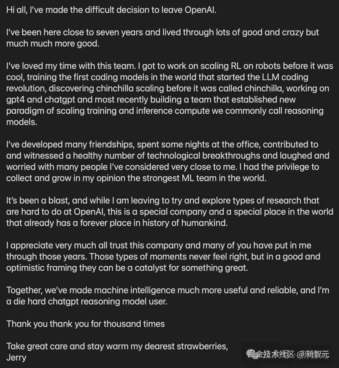 Jerry Tworek 离职声明 & 各位大佬送上祝福