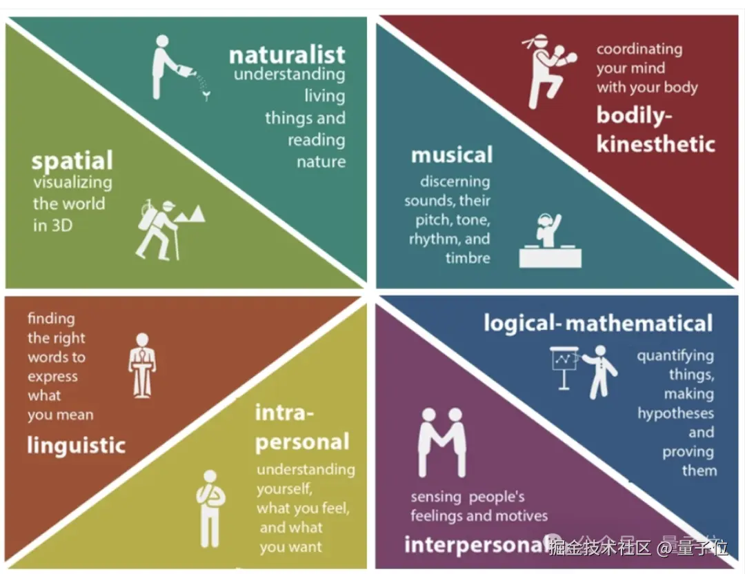 教育心理学家加德纳曾在《Frames of Mind》中提到,人类至少拥有 8 种不同类型的智能------