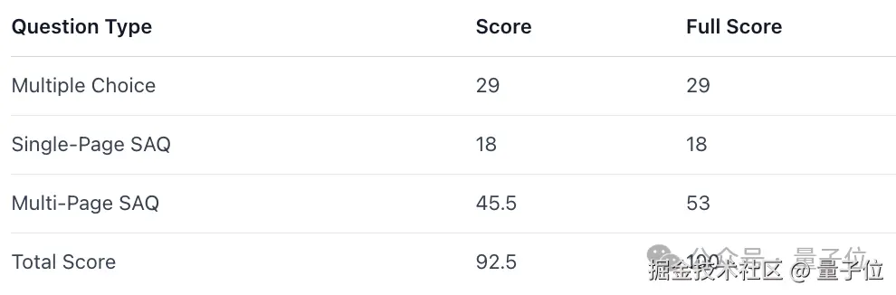 不仅如此,在多项选择题和单页短答题中,乐奇 Rokid 均获得满分,即便是难度更高的跨页短答题(SAQ),也拿到了大部分分数: