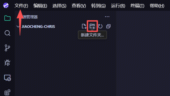点击IDE左上角 "文件" 打开你想要存项目的文件夹,再点击 "新建文件夹" 小图标创建新项目。