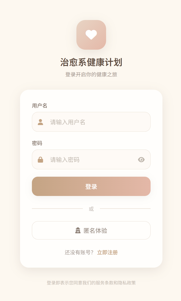 - UI风格:生成一个治愈系、莫兰迪配色的健康计划web网页。
