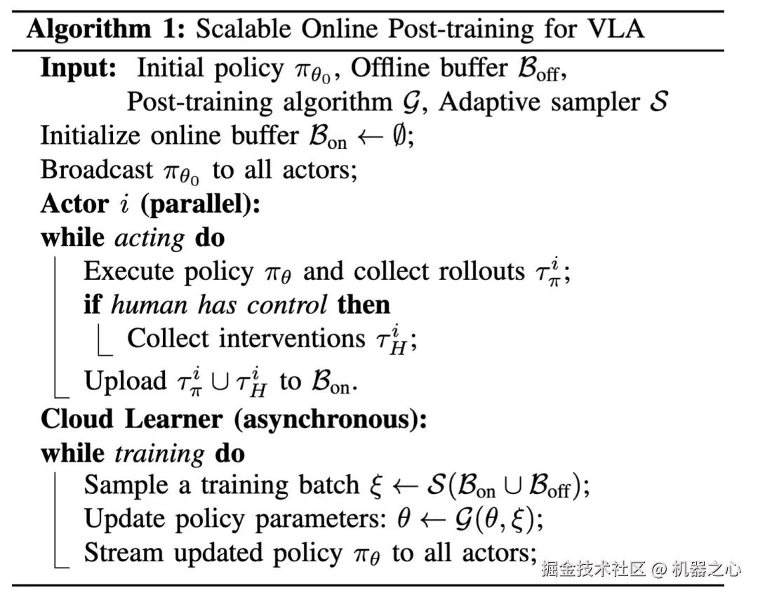 为了解决这个问题,传统的做法是后训练(post-training)。但这通常是一条离线、单机、顺序的漫漫长路:采集数据、离线训练、更新模型、再次部署。这种模式下,机器人探索慢、迭代慢,且很容易在学习新任务时遗忘旧能力。