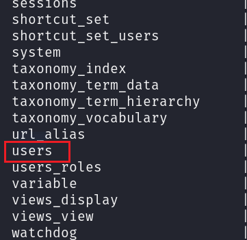 ● use drupaldb; //进入数据库