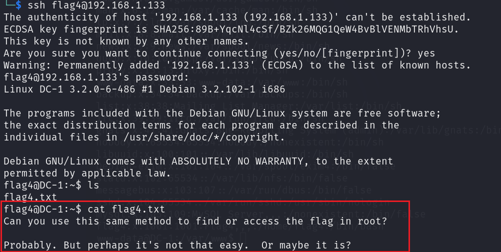 ssh flag4@192.168.1.133