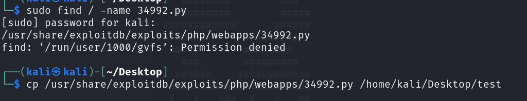cp /usr/share/exploitdb/exploits/php/webapps/34992.py /home/kali/Desktop/test