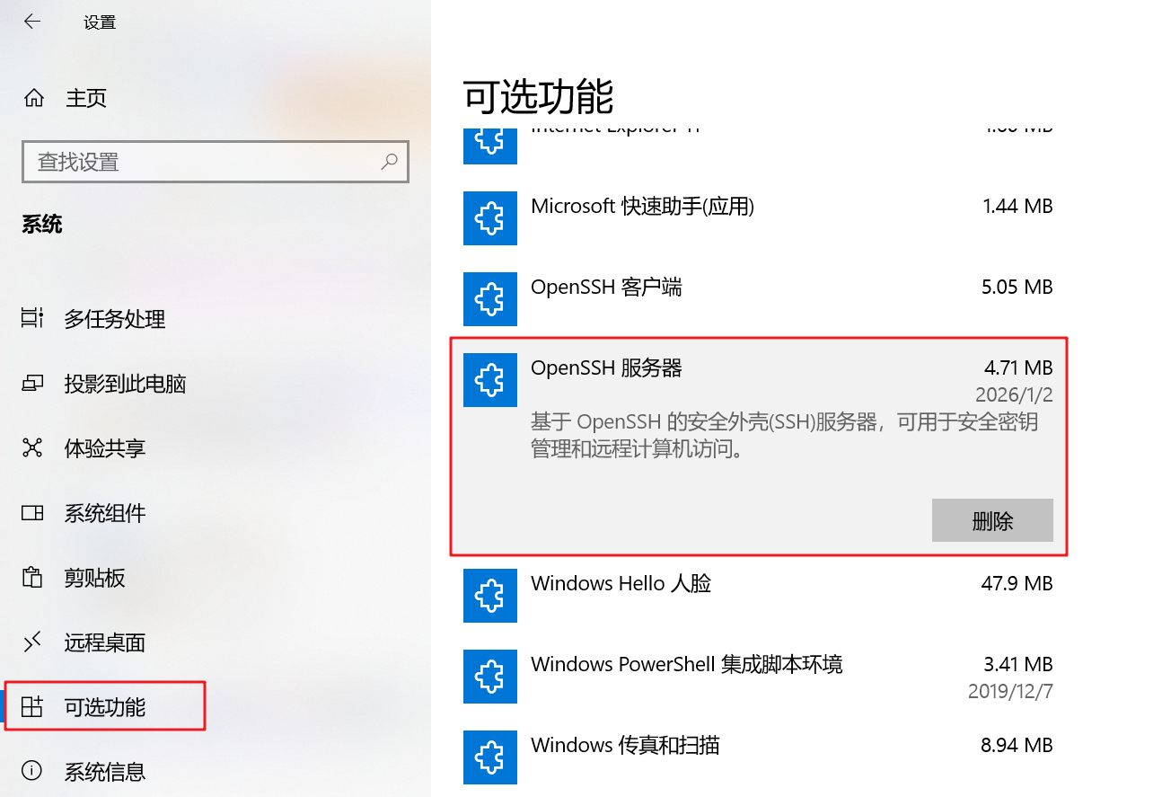 ⏹开启之后再次进行确认,可以看到OpenSSH SSH Server处于Running状态了。