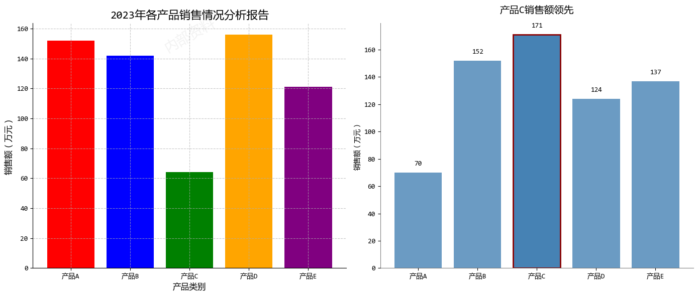 categories = ["产品A", "产品B", "产品C", "产品D", "产品E"]