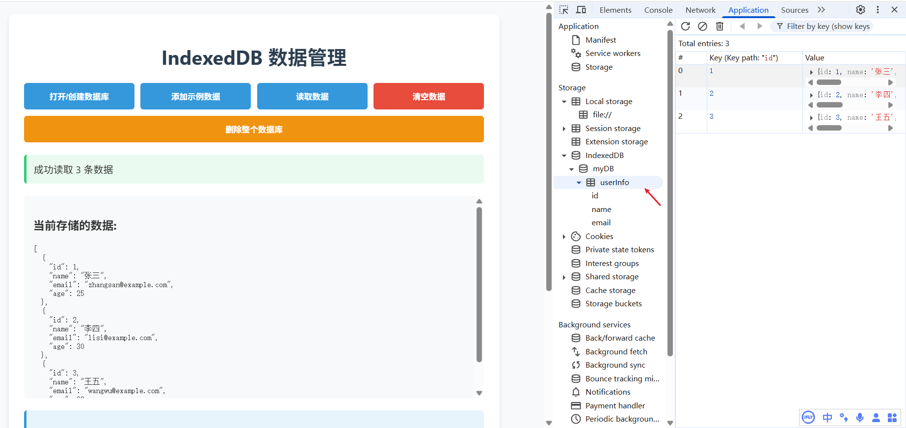| 事务型数据库系统 | 支持 read-only、readwrite、versionchange 事务,具备 ACID 语义(失败回滚)。 |