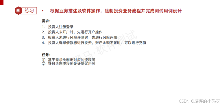 4.2.4、案例:根据业务描述及软件操作,绘制投资业务流程并完成测试用例设计