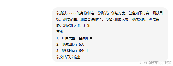 ⑧准入准出标准- 借助AI生成一份测试计划与方案