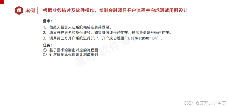 4.2.3、案例:根据业务描述及软件操作,绘制金融项目开户流程并完成测试用例设计