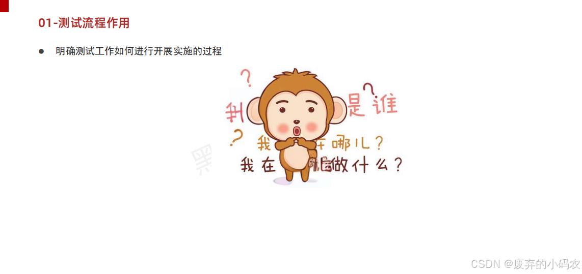 作用:确保测试工作有效有序能够按部就班进行下去