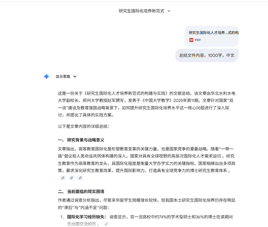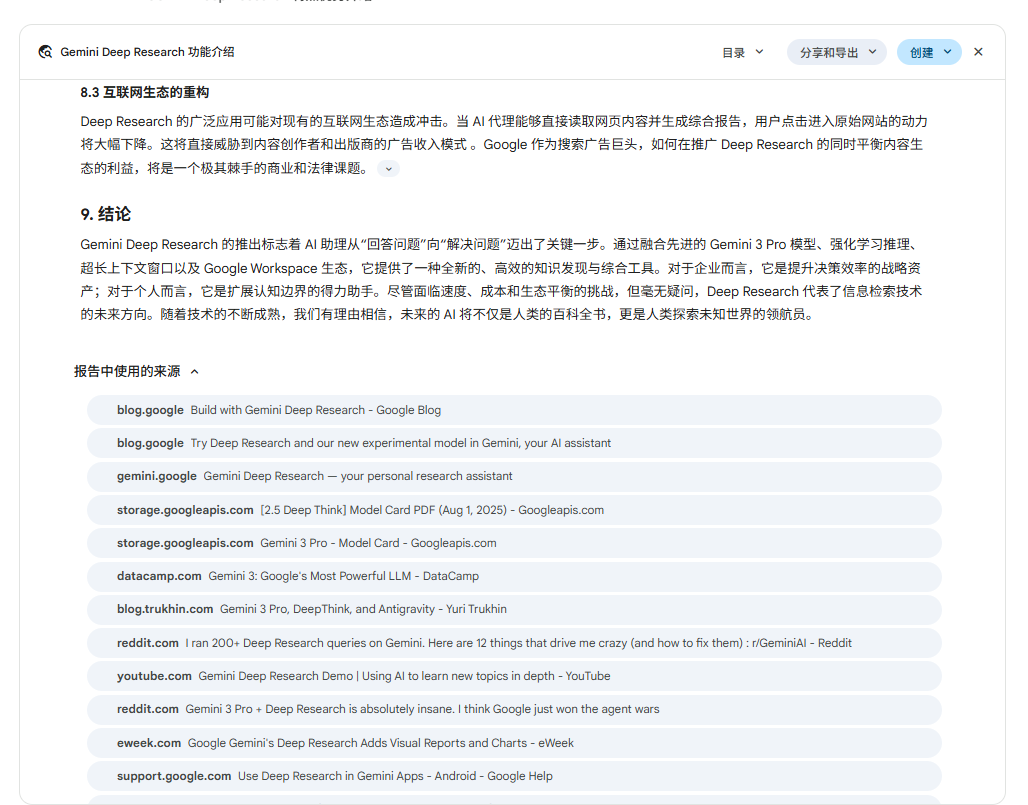 支持Gemini官网原生Deep Research深入研究。