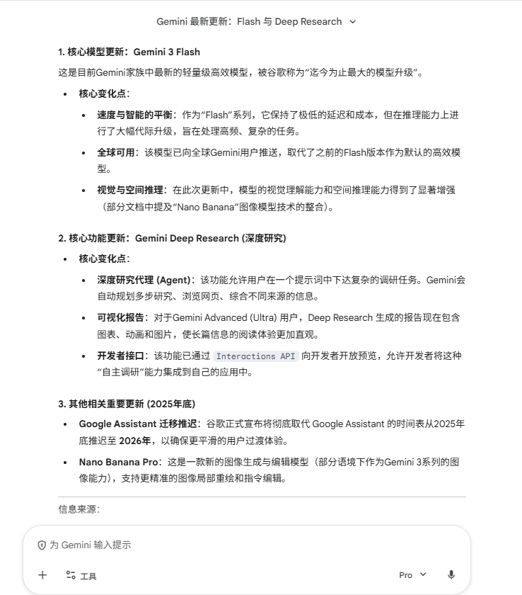 截至今天,谷歌Gemini最近一次官方发布的重要产品或模型更新是什么?请给出发布时间、核心变化点,并注明信息来源。