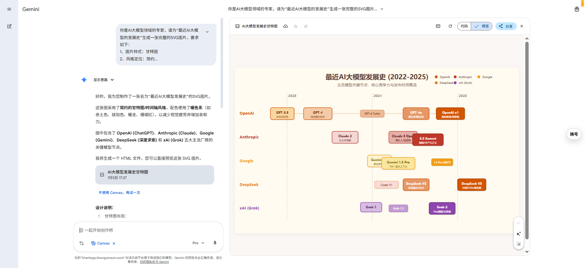 4、包含主流的AI大模型(比如ChatGPT、Claude、DeepSeek、Grok,gemini),展示不同模型的发展关键时