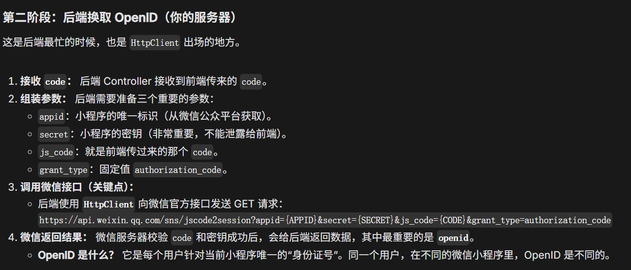 这里的4. 在本项目中通过springmvc将code发送给后端的接口。