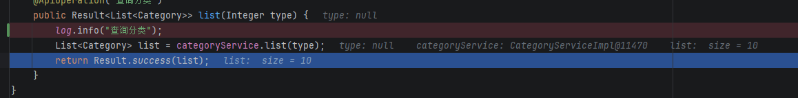 你别看前端需要传递到底是套餐分类还是菜品,这个可能是为了后面精确查询设计的但是这里确实没有,调试的代码如下图所示: