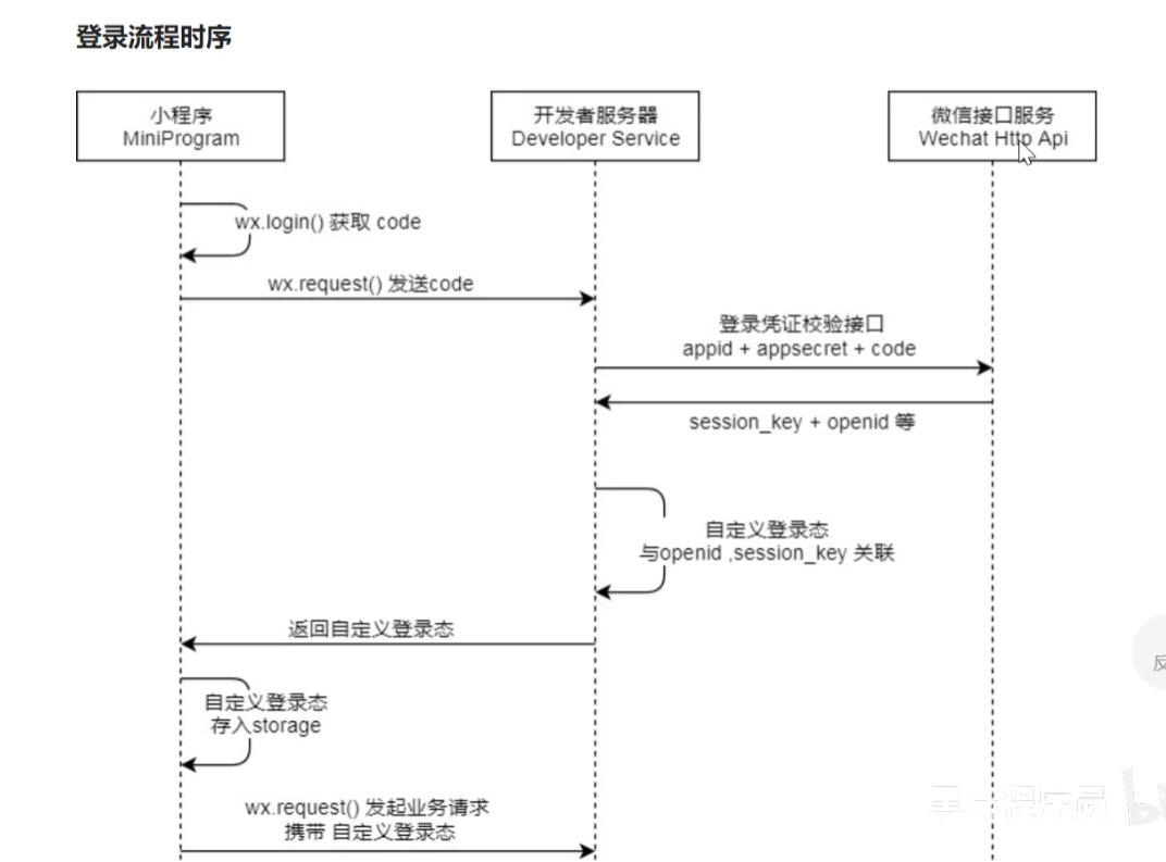 1.首先就是登录微信小程序,这个腾讯有一套自己的流程如下图所示: