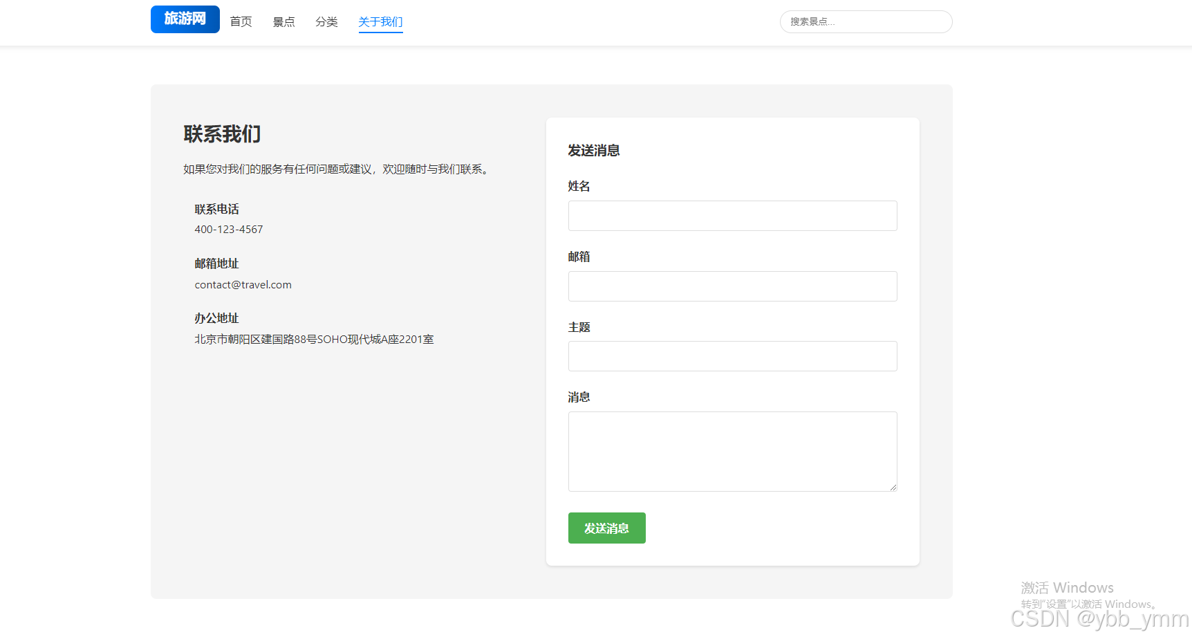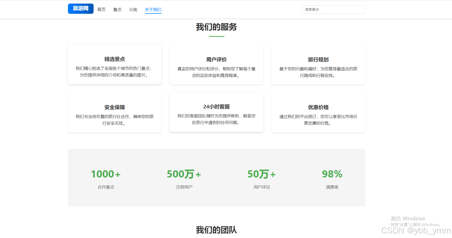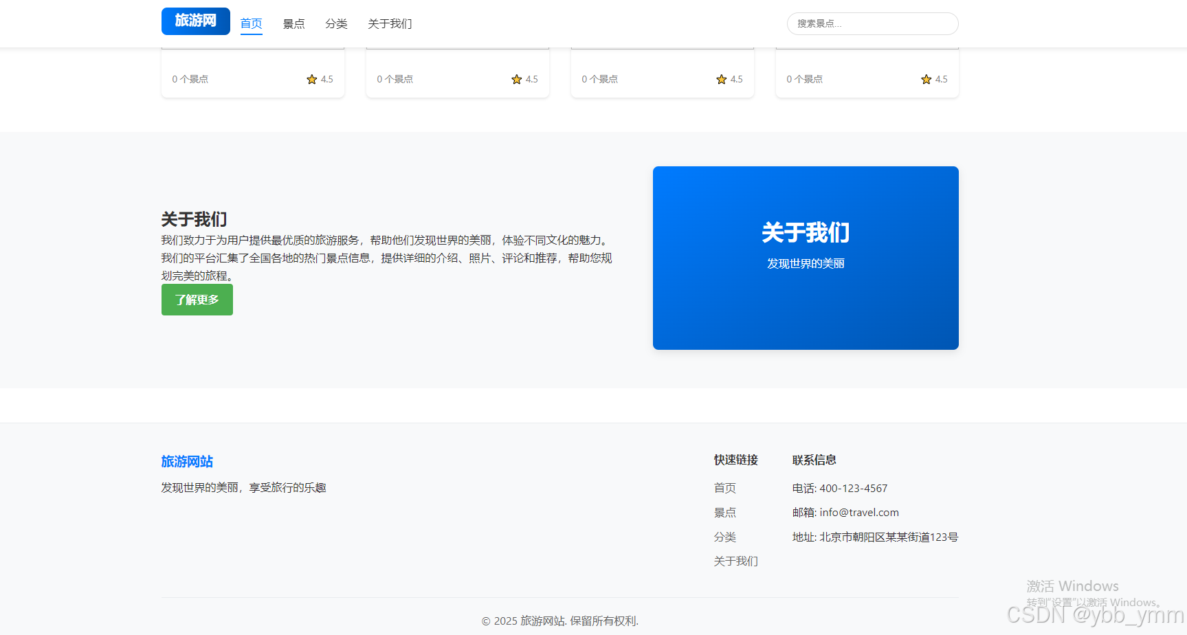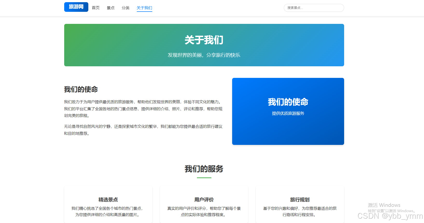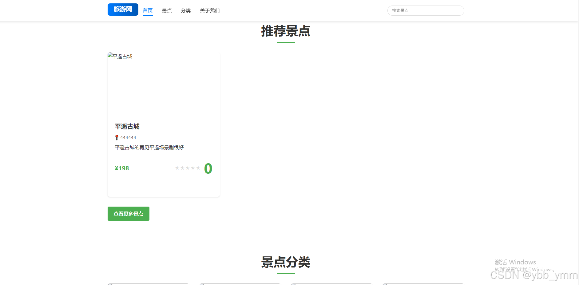 前端则是对景点、分类、以及景点服务的介绍信息。具体如下页面信息