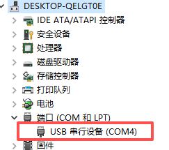 注意:此步骤需要接上底板的TypeC线才能查看COM口,我这里是COM4,不同电脑会不一样,根据你自己电脑来。