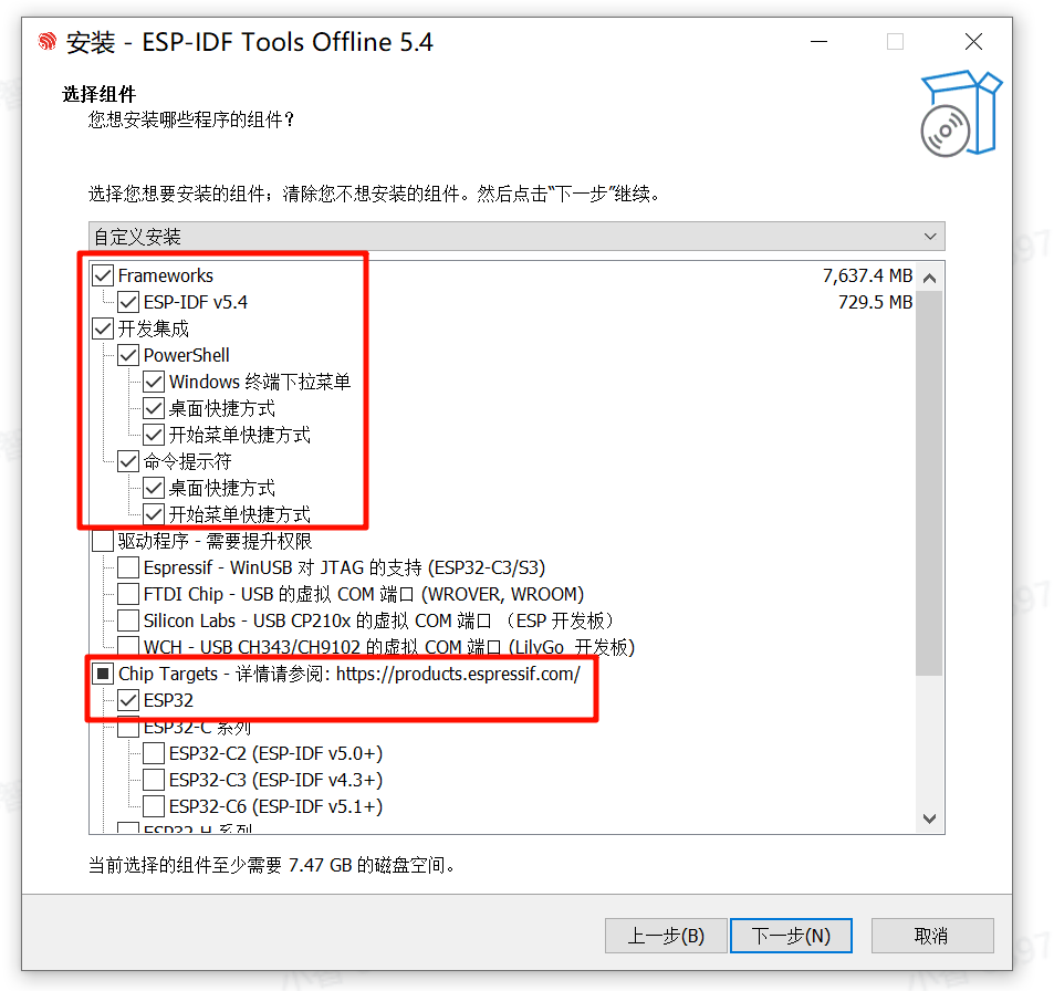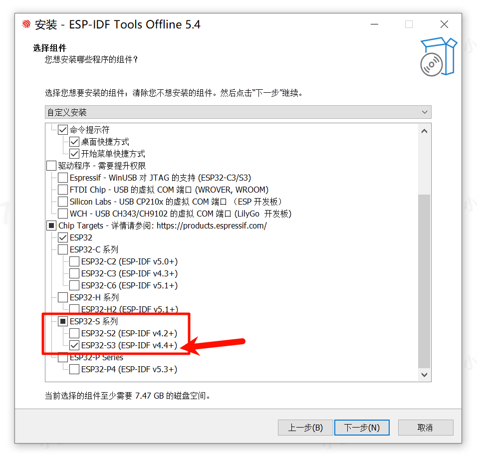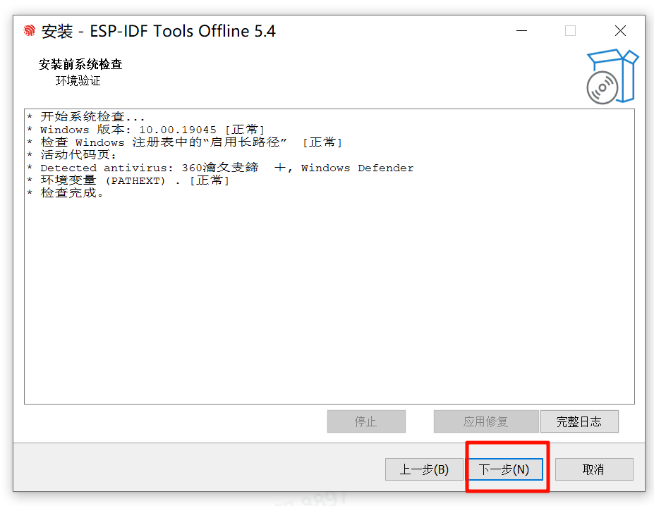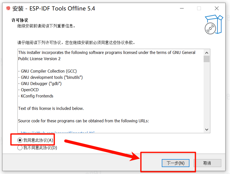 我使用的是 ESP-IDF 5.4 的离线安装包。